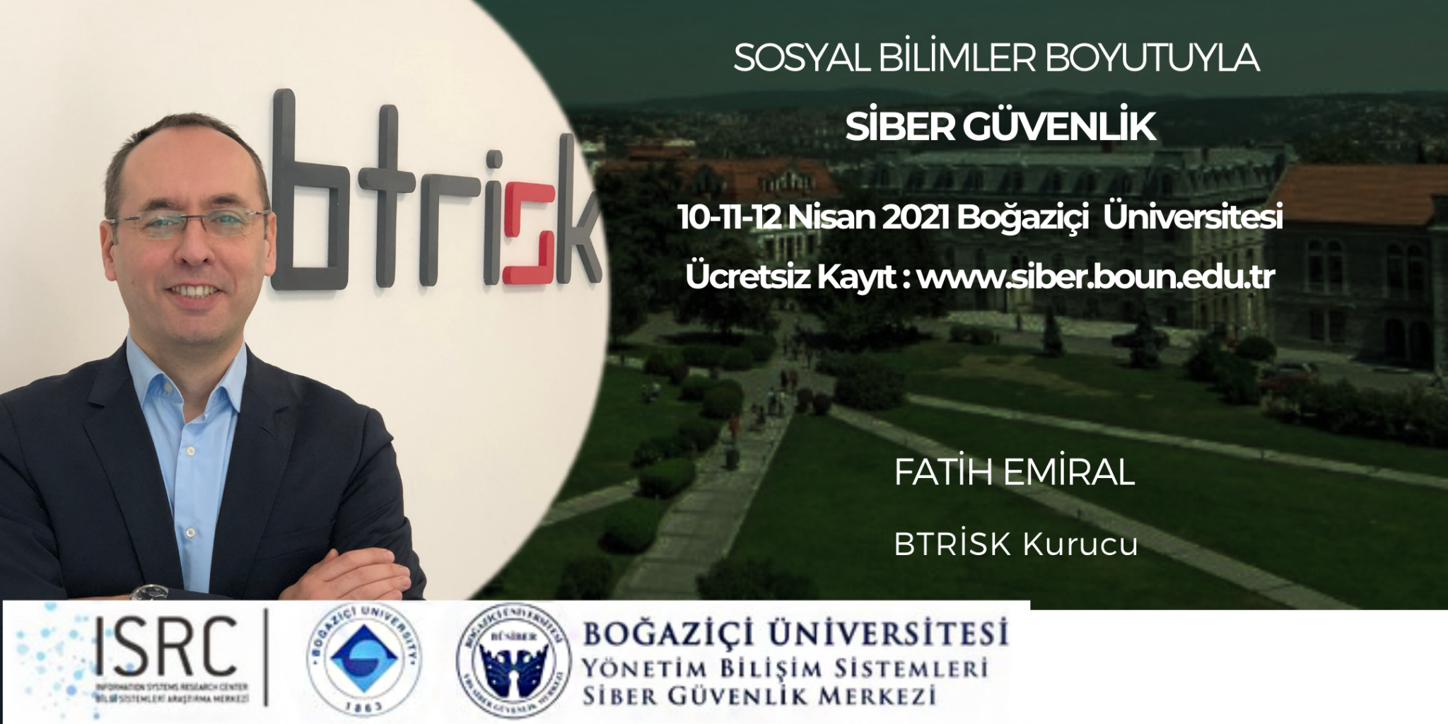 BÜSİBER 10-11-12 Nisan tarihlerinde “Sosyal Bilimler Boyutuyla Siber Güvenlik” adlı bir zirve düzenliyor. Etik hacker eğitimlerine yer verilerek teknik açıdan siber güvenlik dünyasına adım atacak sosyal bilimler öğrencileri, teorik bilgilerle de çok disiplinli siber güvenlik çalışmalarına başlayabilecekler.