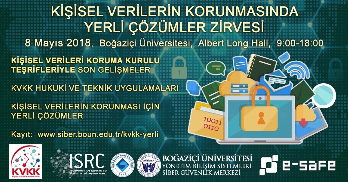 Bilgi Sistemleri Araştırma Merkezi bünyesindeki BÜSİBER (Boğaziçi Üniversitesi Yönetim Bilişim Sistemleri Siber Güvenlik Merkezi) ve E-SAFE ülkemizin gündeminde olan Kişisel Verilerin Korunması Kanununa odaklanıyor ve bu çerçevede Kişisel Verileri Koruma Kurulu teşrifleri yanı sıra yerli üreticileri, akademiyi ve kamuyu bir araya getiriyor.