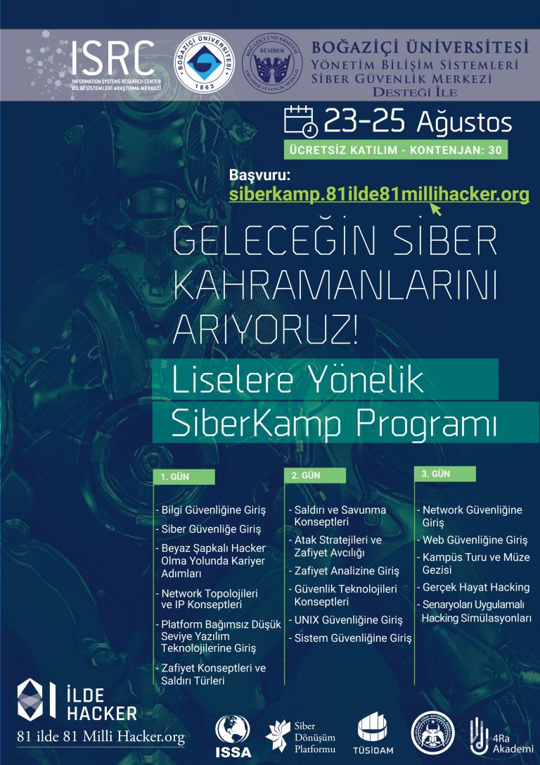 BÜSİBER liseli gençlere yönelik 81 İlden 81 ‘Milli Hacker’ projesini destekliyor. Bu proje Türkiye genelinde verilecek farkındalık eğitimleriyle ve düzenlenecek etkinliklerle yetenekli gençleri ülkemize kazandırmayı amaçlıyor.