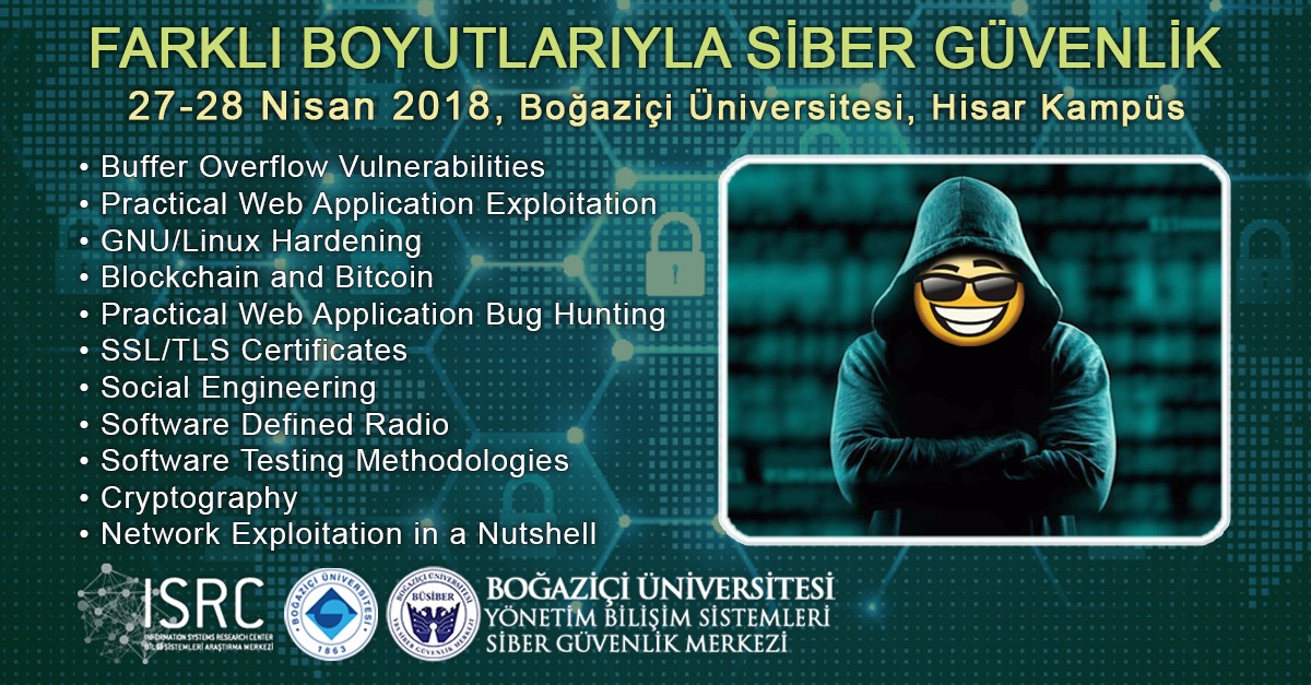 27-28 Nisan 2018 tarihlerinde siber güvenliğin en güncel en ilgi çekici başlıkları ile karşınızdayız. Kayıt için tıklayınız